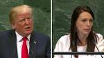 Contrasting styles: Trump and Ardern speak at the UN – video